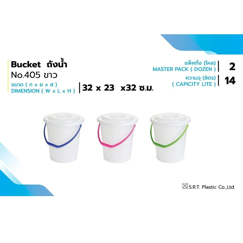 305 ถังน้ำ 10 ลิตร พร้อมฝา สีสดใส คละสี SRT (3 โหลๆ ละ 690)